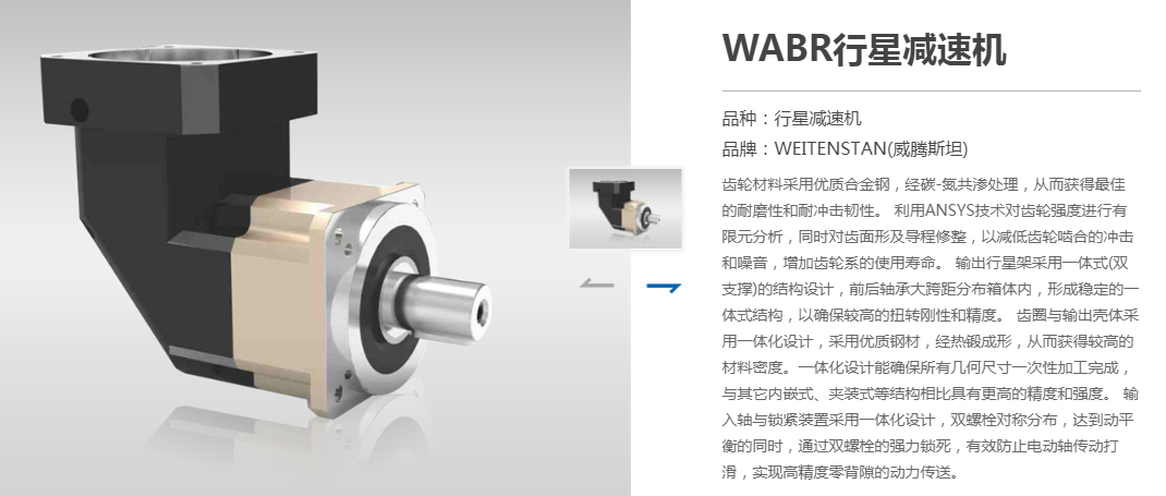 了解详情 +WRV-E减速机是威腾斯坦减速机旗下的一款行星减速机,具有...