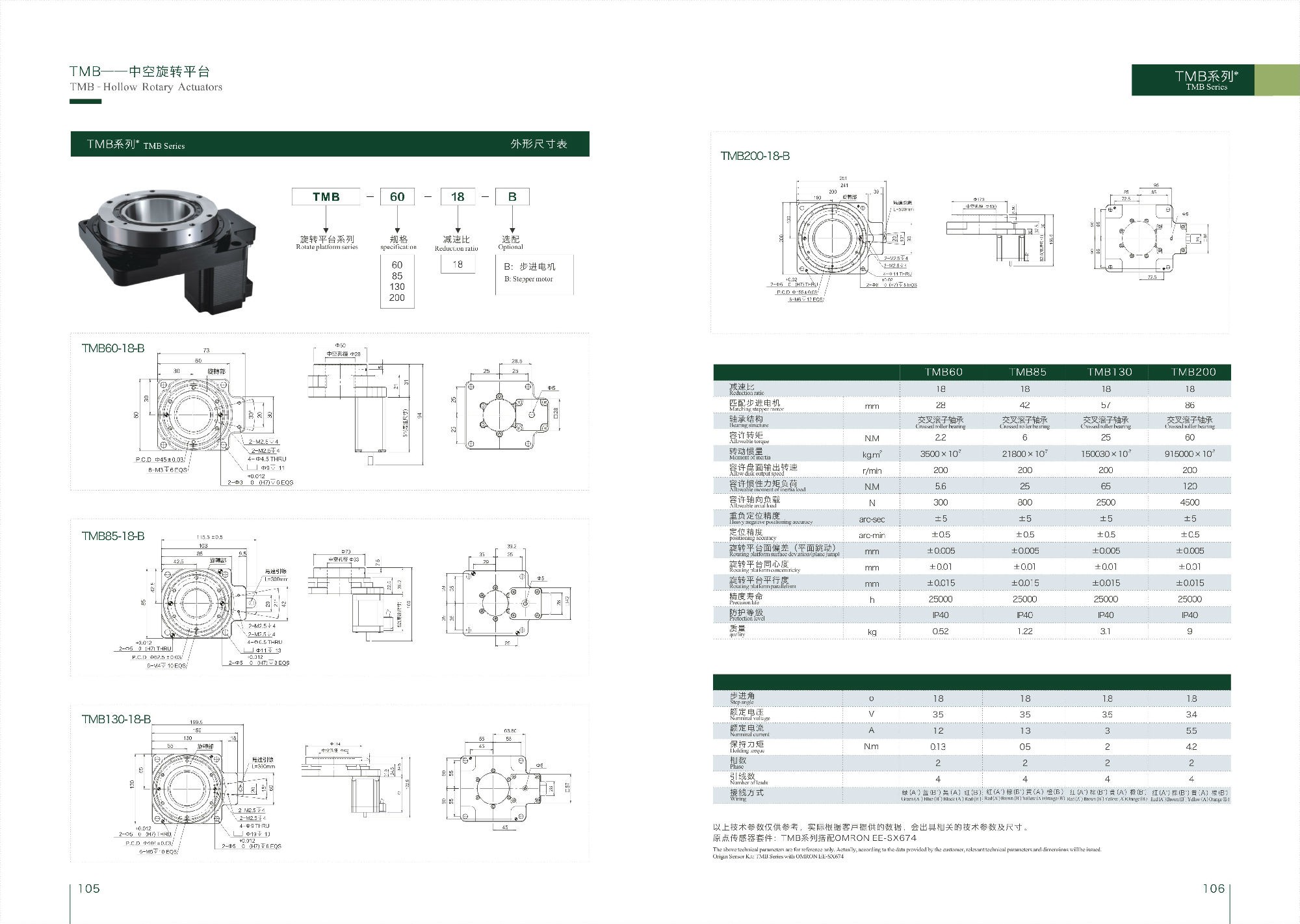 TMB中空旋转平台可采用不同厂家的伺服马达驱动,精度高,运转动作平稳,盘面运转平稳,顺畅且定位快速。