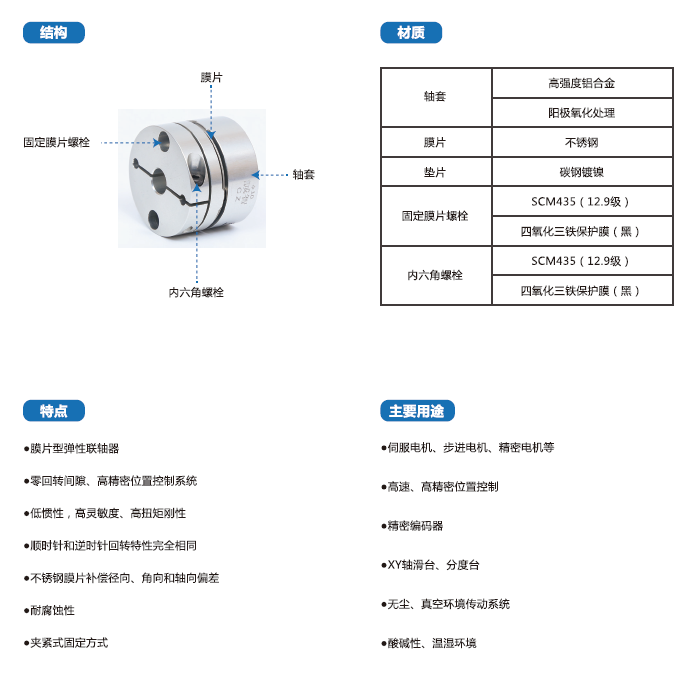 DFP-C系列联轴器采用高强度铝合金材料,经过阳极氧化处理,广泛用于伺服电机、步进电机、精密电机等。