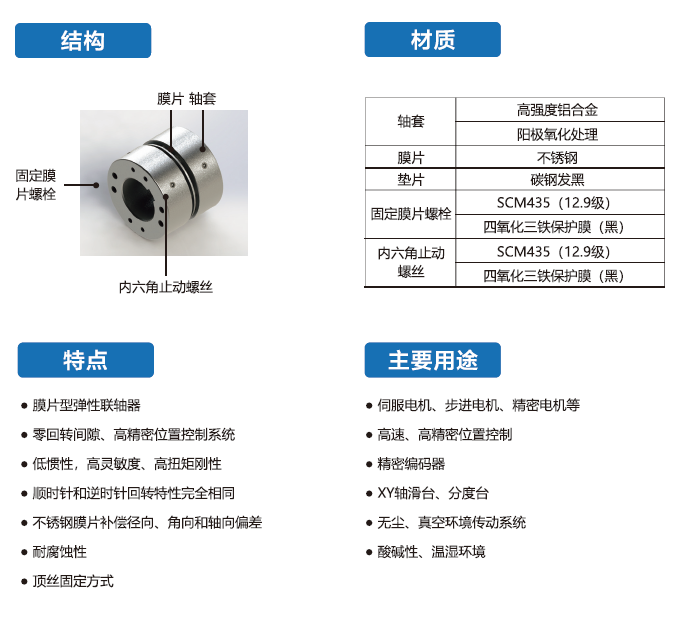 DFPA-G系列联轴器采用高强度铝合金材料,经过阳极氧化处理,广泛用于伺服电机、步进电机、精密电机等。