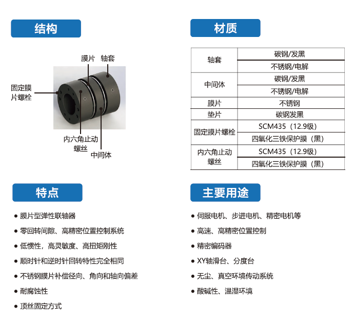 SFPS-G系列联轴器采用碳钢发黑,利用胀紧套联接的膜片型弹性联轴器,广泛用于伺服电机、步进电机、精密电机等。