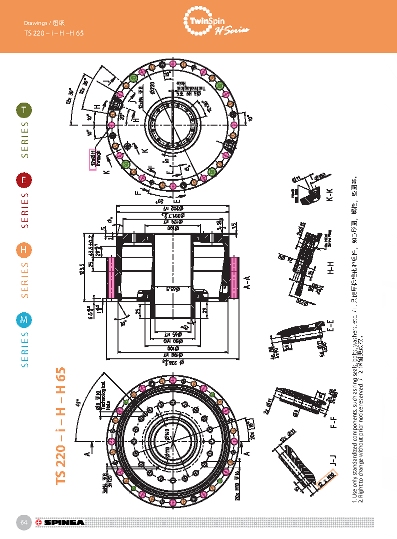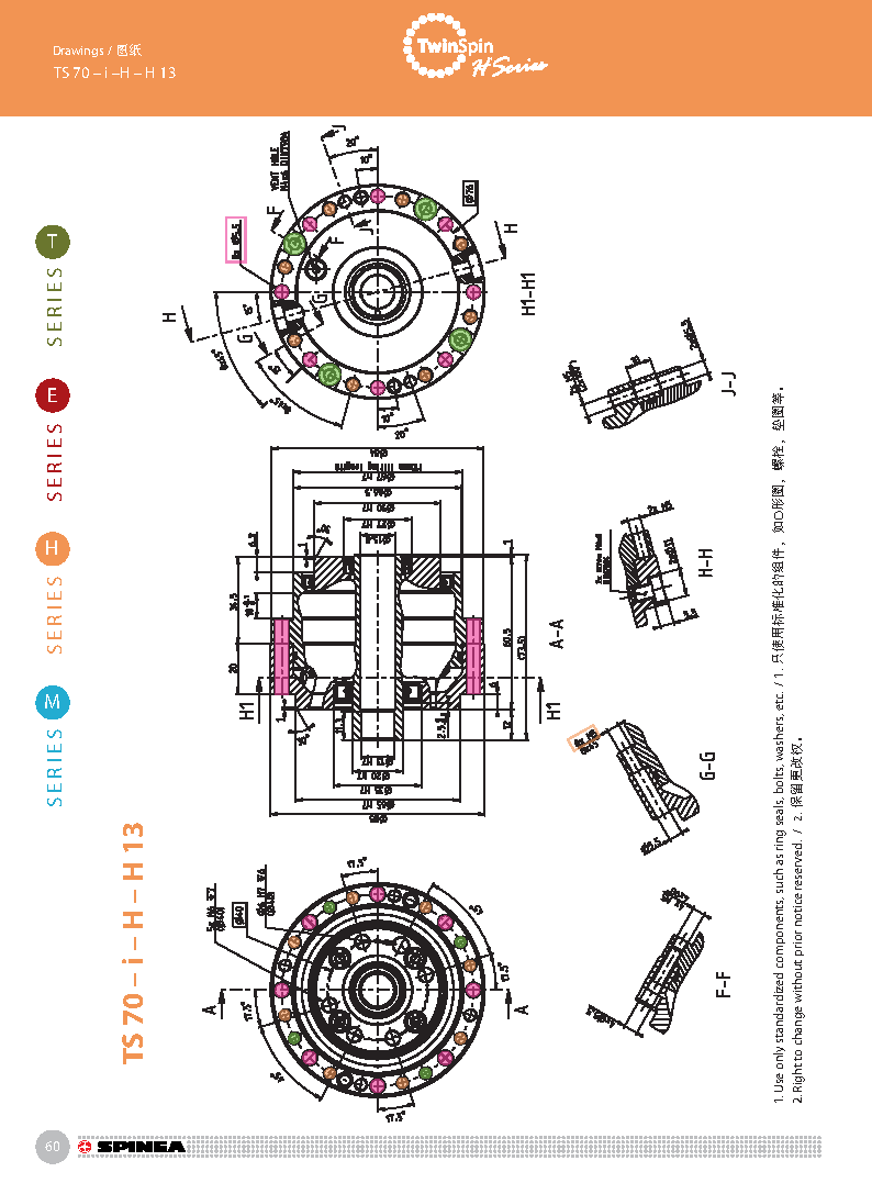 H 系列是带有中空孔的Twinspin高精度减速机。电线,压缩空气管道,驱动轴可从减速机中间穿过。 该系列为完全密封,内部注有终生免维护油脂。 减速机包含精密减速机构和高强度交叉滚子轴承,故又名“轴承式减速机”。这种设计可以把负载直接安装在减速机输出法兰上,省去输出端的额外轴承。