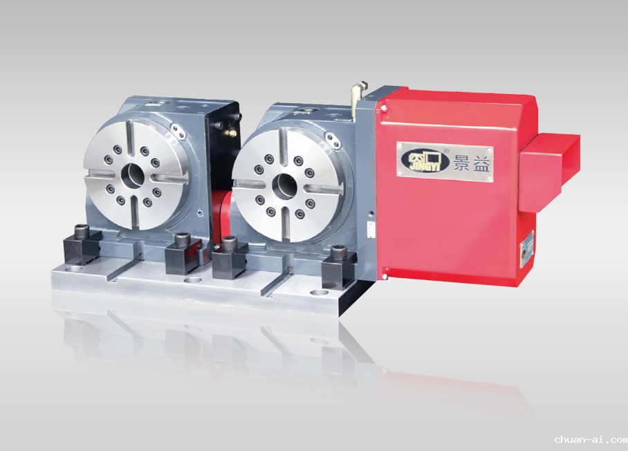 CNC数控分度盘 分度盘是将工件夹持在卡盘上或两顶尖间,并使其旋转、分度和定位的机床附件,多用于自动化设备中。 数控分度盘(又称第四轴),用数字控制,可与数控机床、自动化生产线联动,实现精确分度进行机械加工及精确定位。 在传统工艺的机械加工中,工件四个面需要四道工序进行加工,现在加装数控分度盘后可以把四道工序省成一道工序,而且精度精准确到千分之一度。使用了数控分度产品后,无限制的角度都可顺利完成,不仅减少工序还大幅度地提升效率与品质。